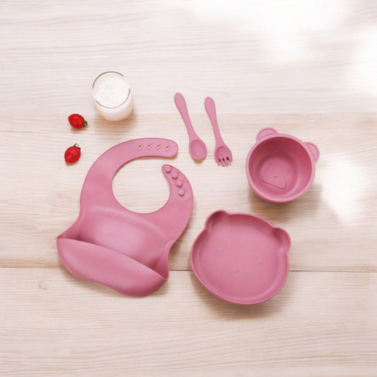 Silicone Feeding Set Pink Bear