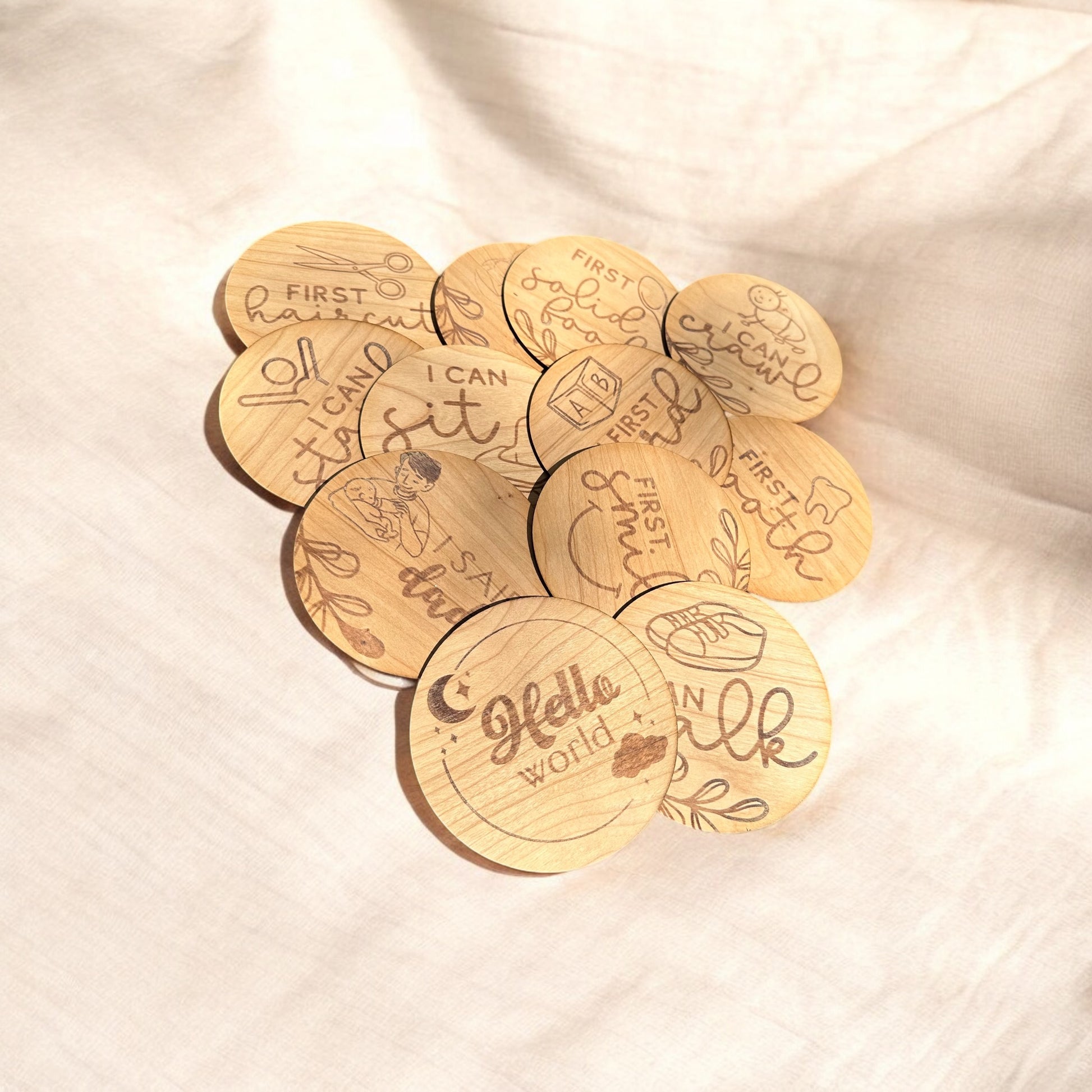Ideal for documenting each milestone and creating lasting memories. Whether it’s their first smile, first steps, or that unforgettable first “mama”, these milestone discs add a touch of natural magic to every photo. Because your baby’s journey is a story worth sharing, and we’re here to help you tell it—one milestone at a time.