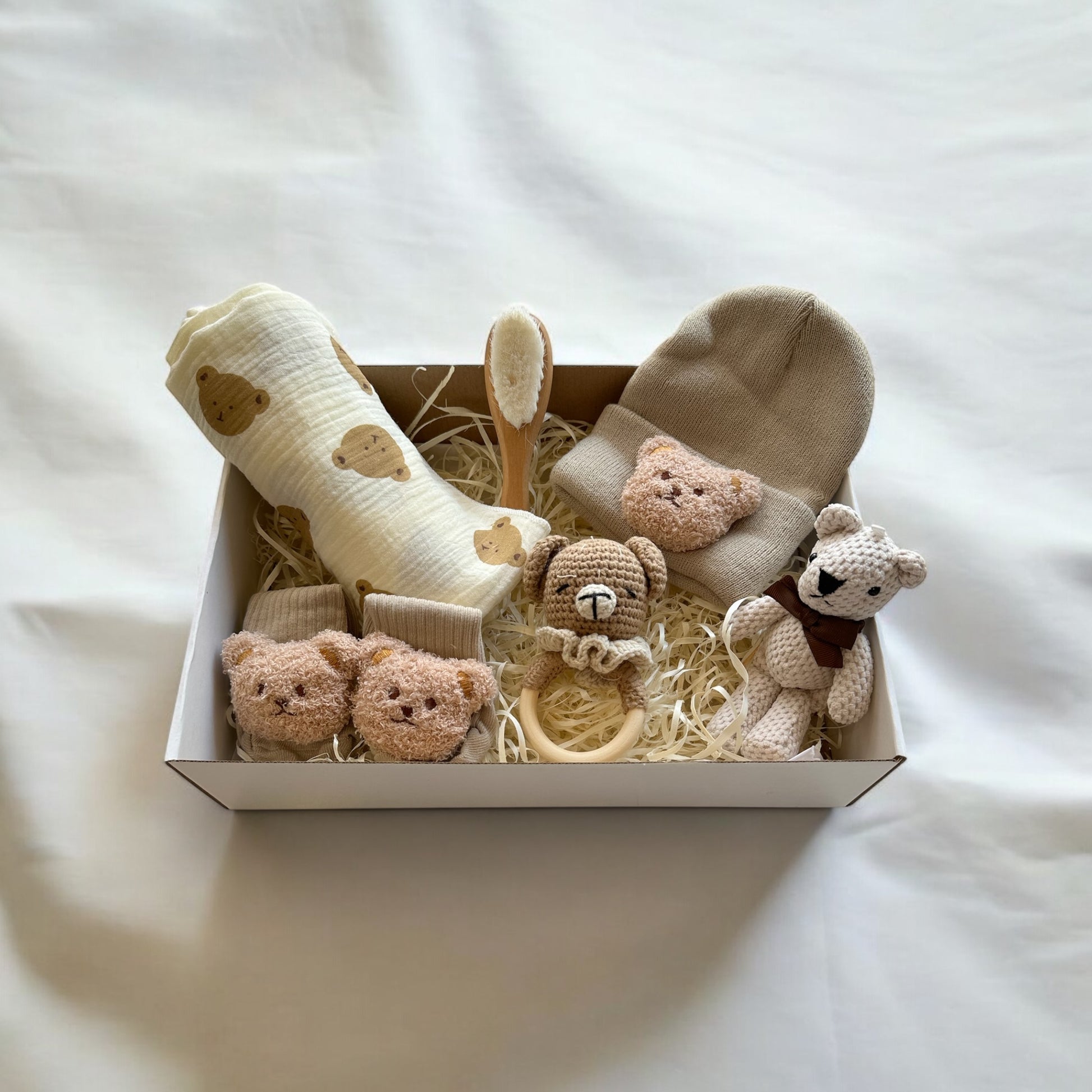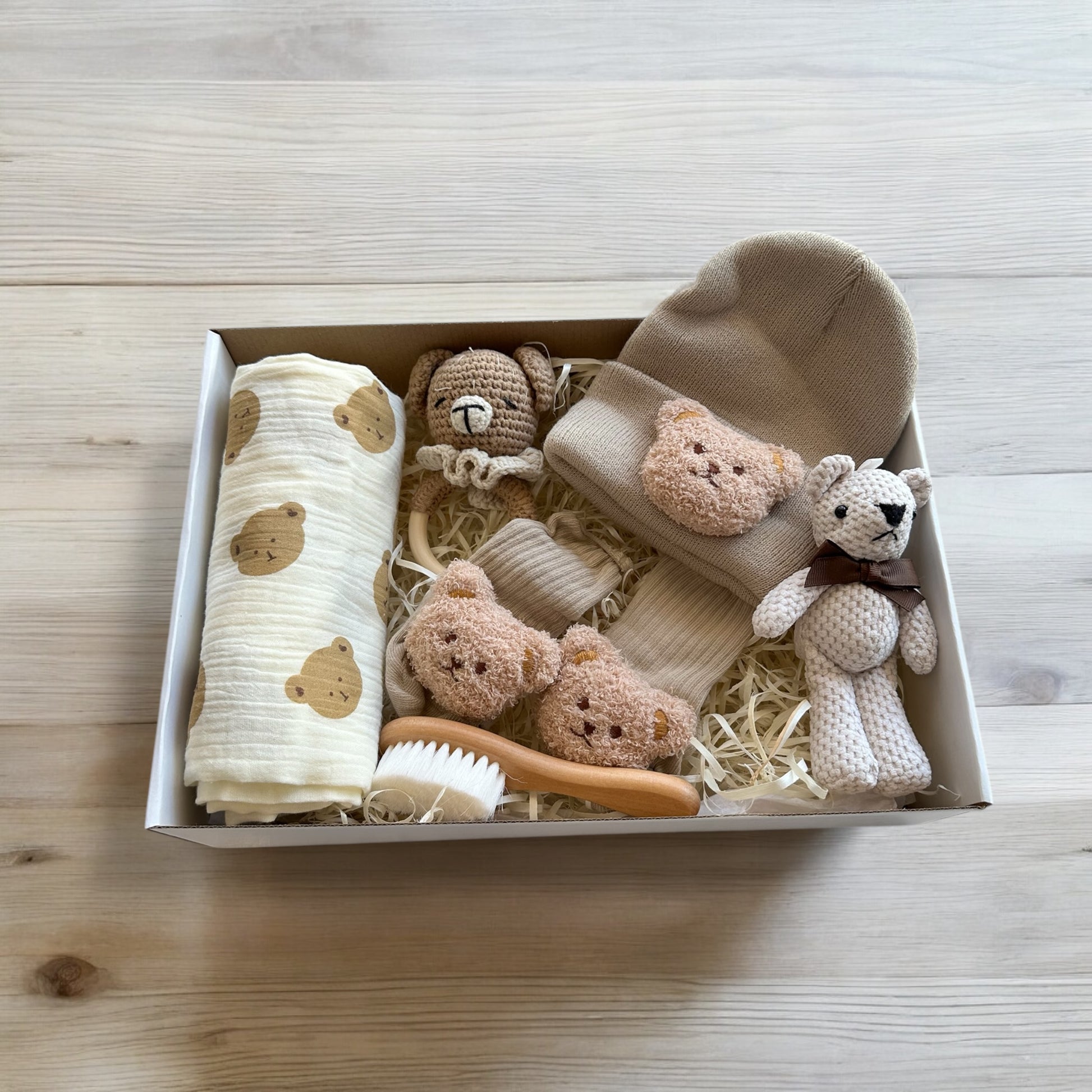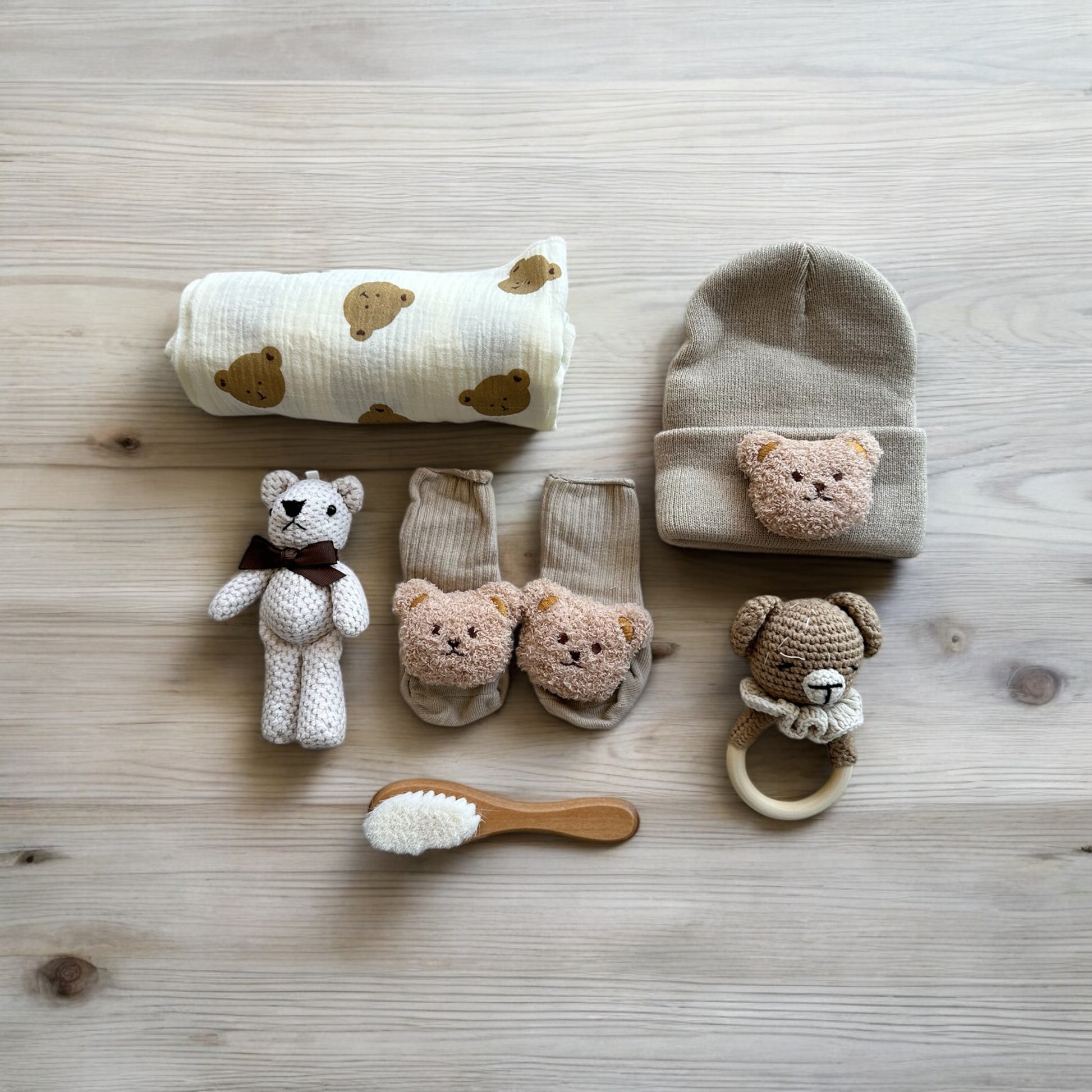 • Small Teddy Bear: A sweet and cuddly companion, perfect for baby to hold and cherish.