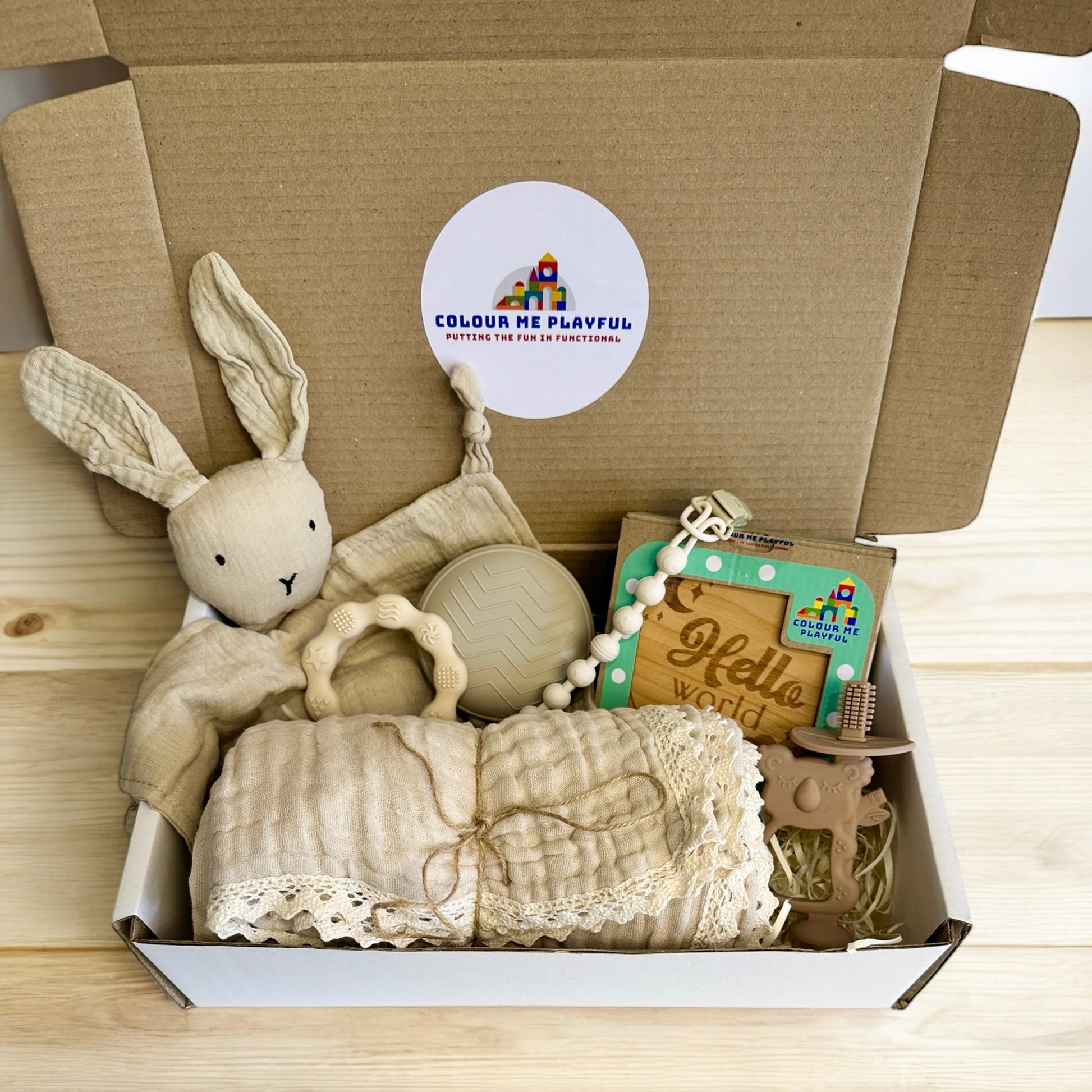 Give the perfect gift for new parents with this thoughtfully curated baby essentials set. This adorable collection includes: