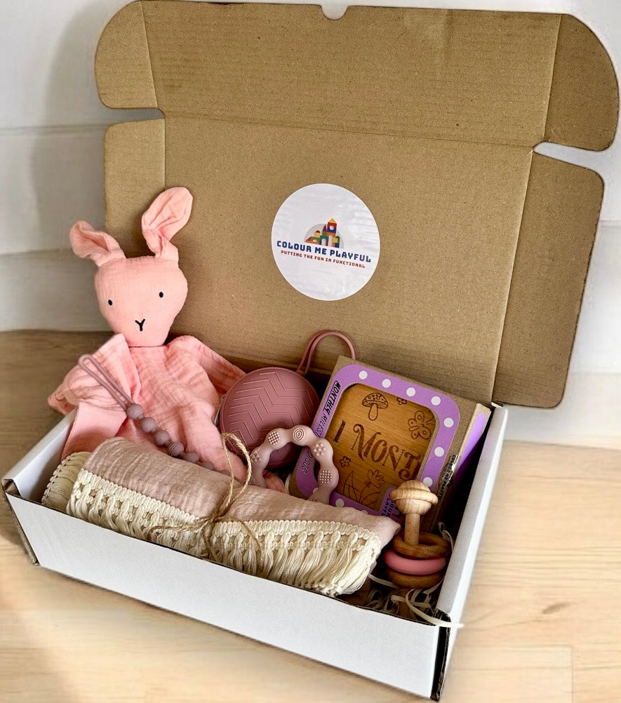 Give the perfect gift for new parents with this thoughtfully curated baby essentials set. This adorable collection includes: