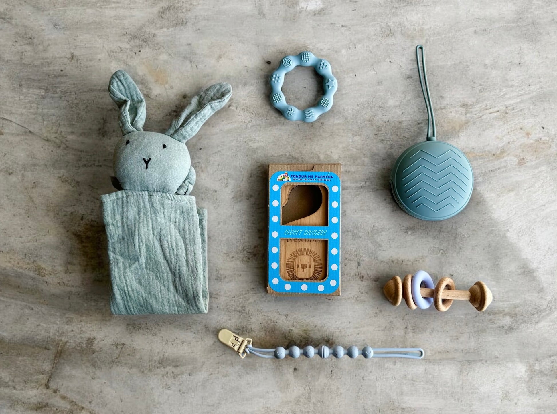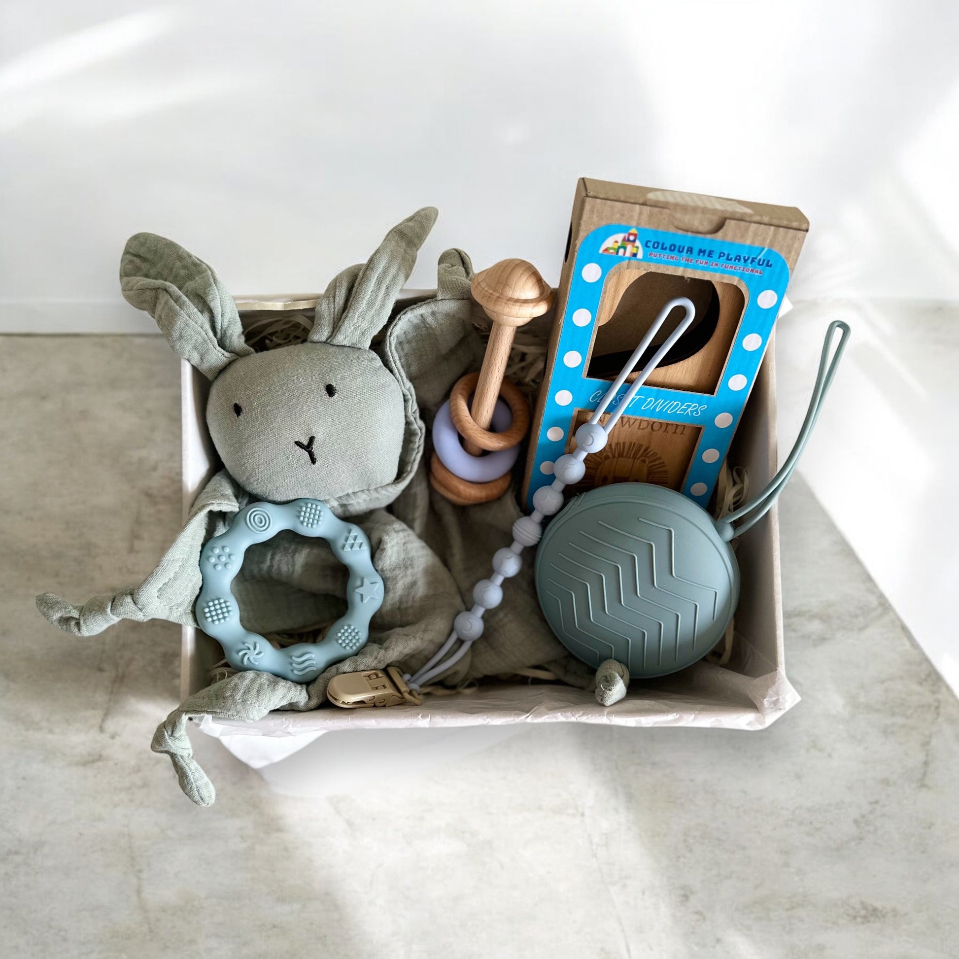 Give the perfect gift for new parents with this thoughtfully curated baby essentials set. This adorable collection includes: