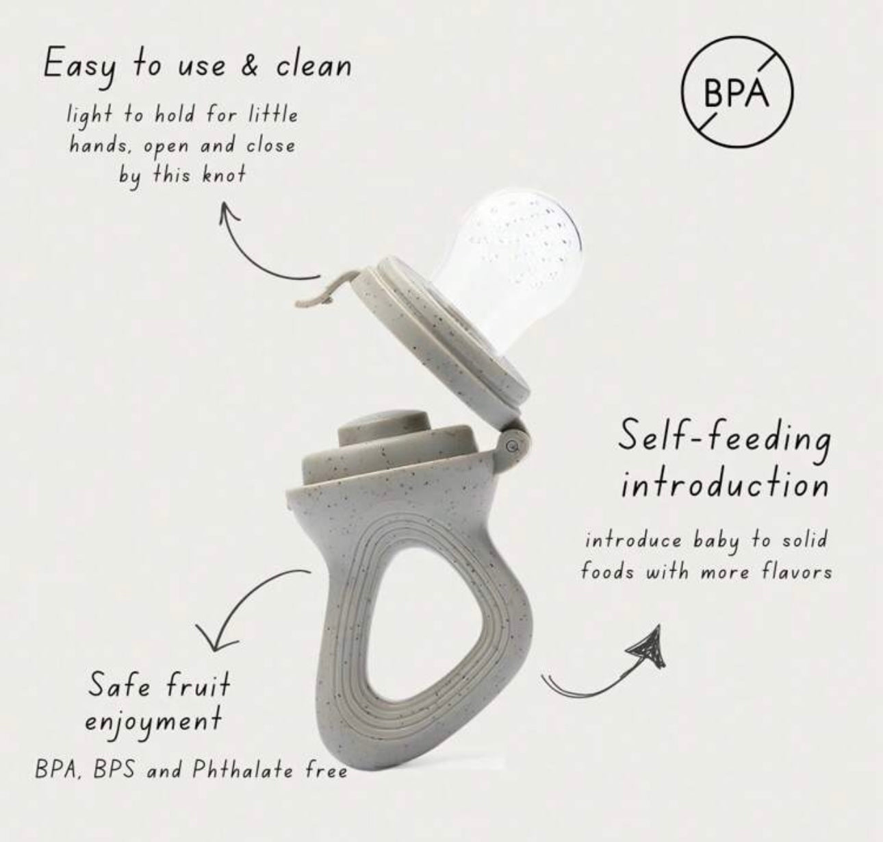 Introduce your baby to fresh fruits safely with our Fruit Feeder Pacifier. Designed with a silicone mesh this pacifier allows little ones to enjoy natural flavors without the risk of choking. Simply place pieces of fruit, vegetables, or even frozen treats inside, and watch as your baby explores new tastes while soothing their gums. The ergonomic handle is easy for tiny hands to hold, promoting self-feeding skills. Made from BPA-free, food-grade silicone, this feeder is easy to clean and ideal for introducing healthy foods during the teething phase.