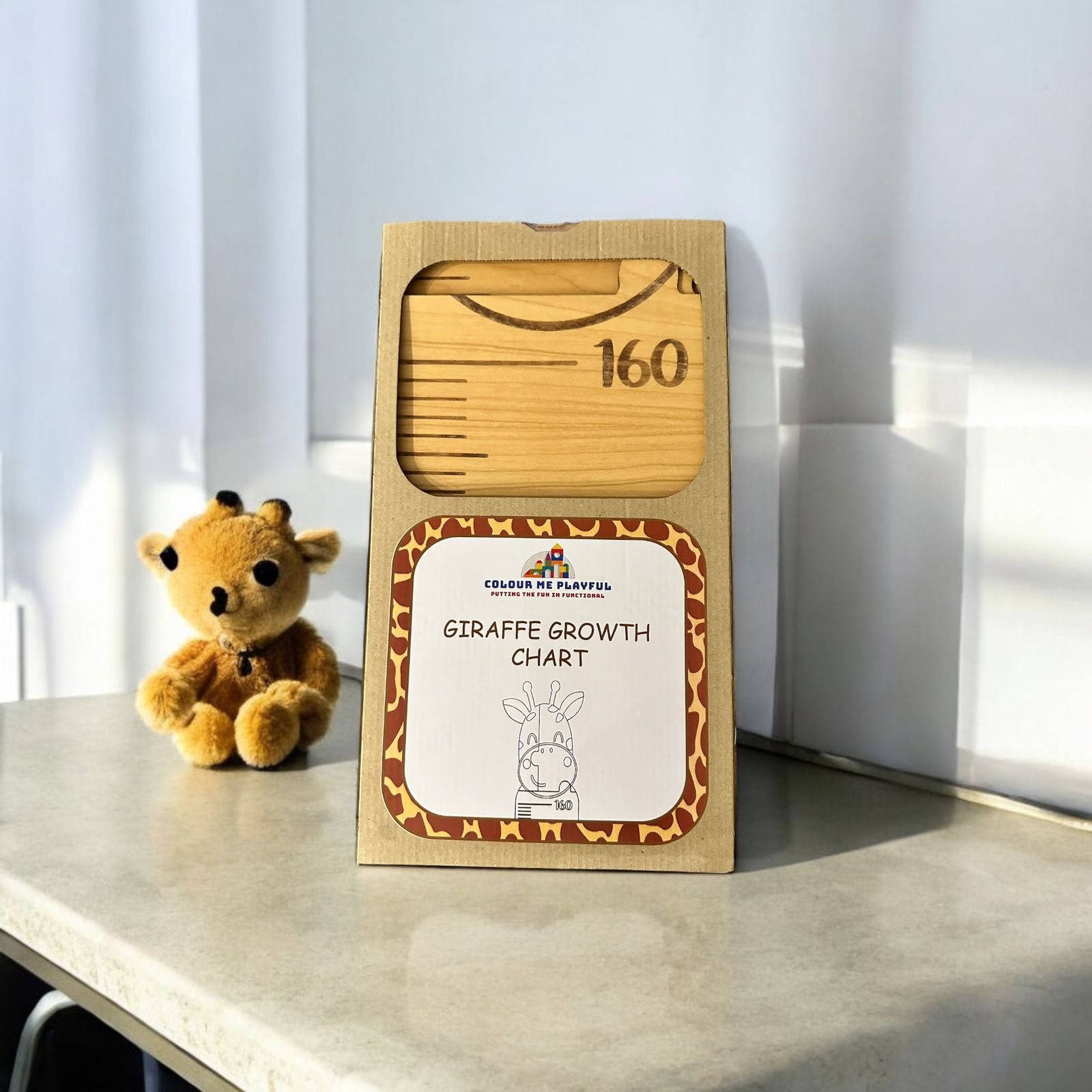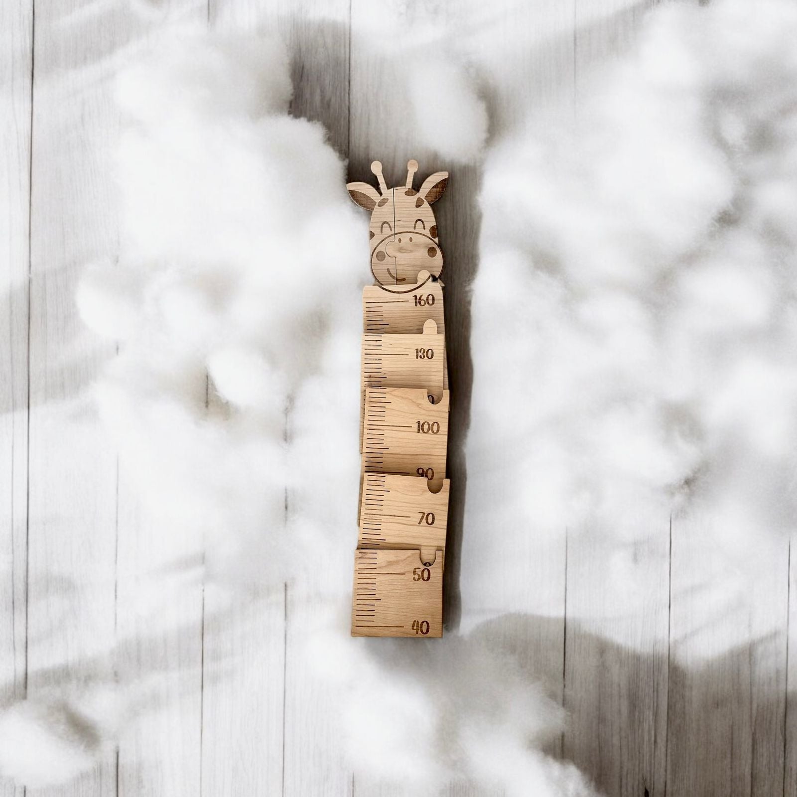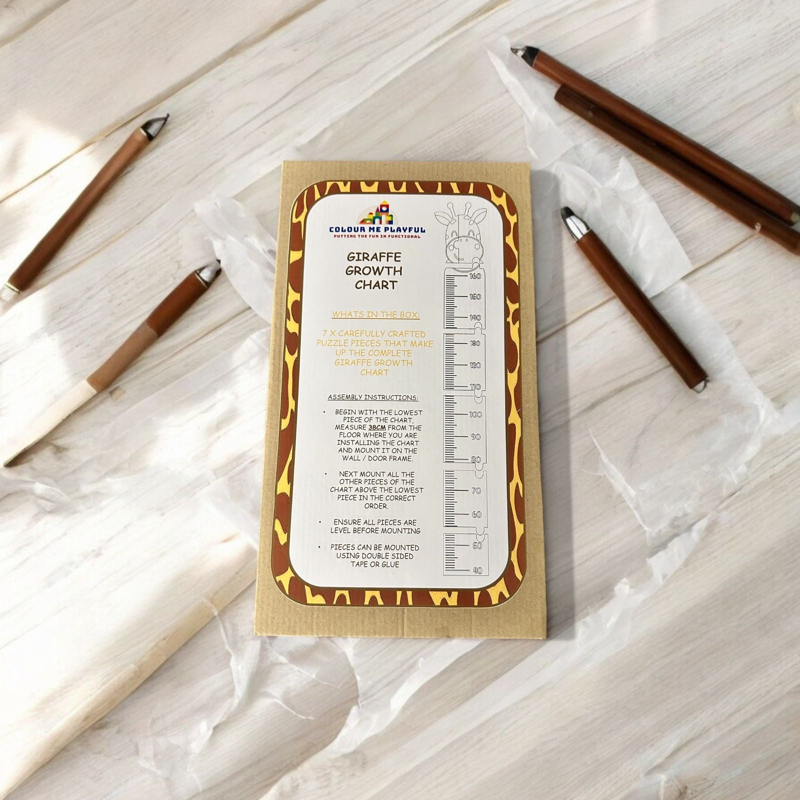 Giraffe Growth Chart - The perfect way to track your child’s growth while creating lasting memories! Designed to make the process fun and simple, this charming giraffe growth chart is easy to use. Just stick it on the wall using double sided tape or glue, and have your child stand in front of it to see how much they’ve grown! Use a permanent market to Record the date and name of the child being measured to save these special memories! Crafted to be both decorative and functional, the chart comes as 7 easy-to-assemble pieces, all beautifully packaged in a giraffe themed box. Whether you’re marking special milestones or watching them grow every day, this giraffe growth chart is sure to become a cherished part of your home. Perfect for nurseries, bedrooms, or playrooms!