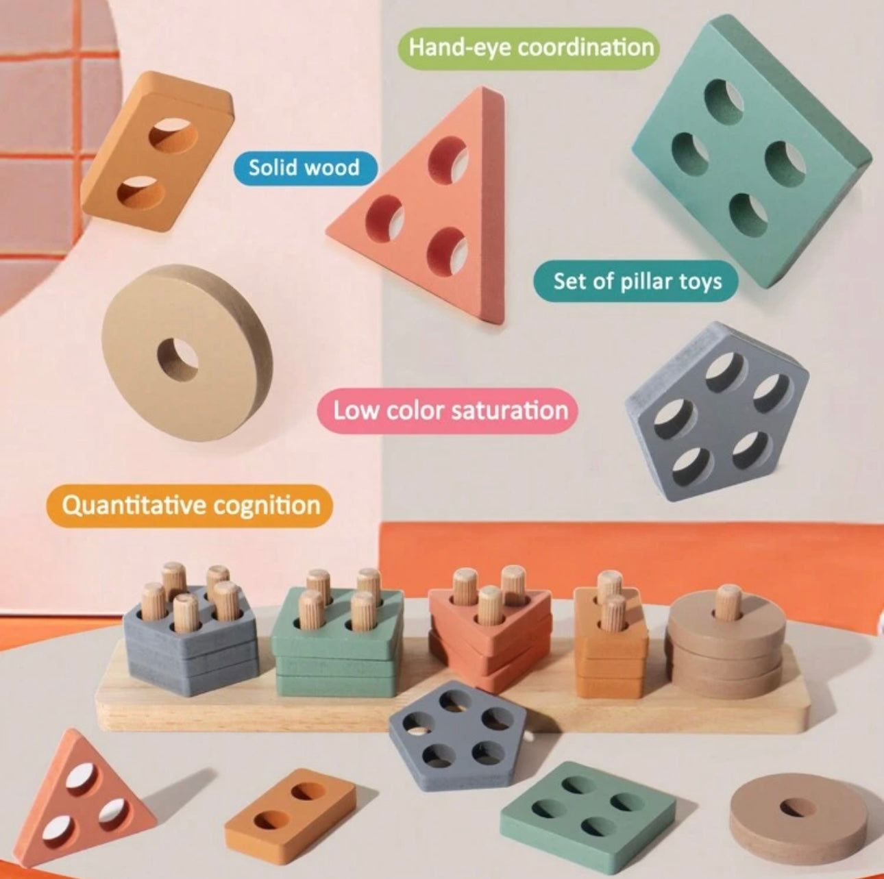 Encourage hands-on learning with this Montessori shape and learning puzzle. Crafted to support independent play, this puzzle introduces children to shapes, colours, and spatial awareness. Each wooden piece is smooth and easy to grasp, helping little hands build fine motor skills as they fit shapes into their matching slots. With a simple, natural design inspired by Montessori principles, this puzzle fosters focus, problem-solving, and early cognitive development in a playful, engaging way. Perfect for curious minds and growing hands, it’s an ideal addition to any early learning environment.