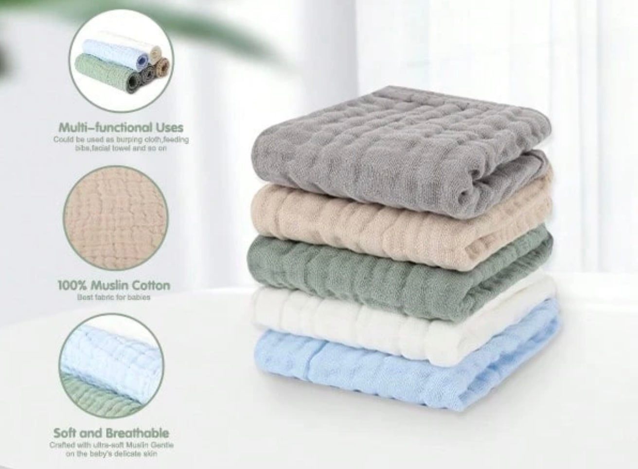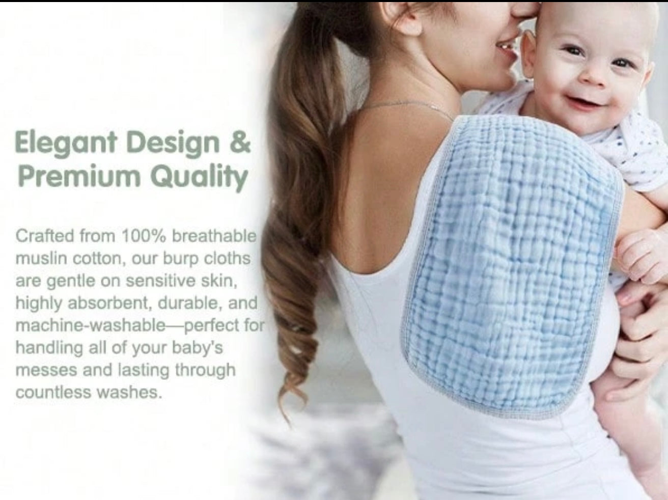 Keep messes to a minimum with our 5-Pack Muslin Burp Cloths – a must-have for every parent. Made from soft, breathable layers of premium cotton muslin, these cloths are gentle on delicate skin while providing excellent absorbency for dribbles, spills, and burps.