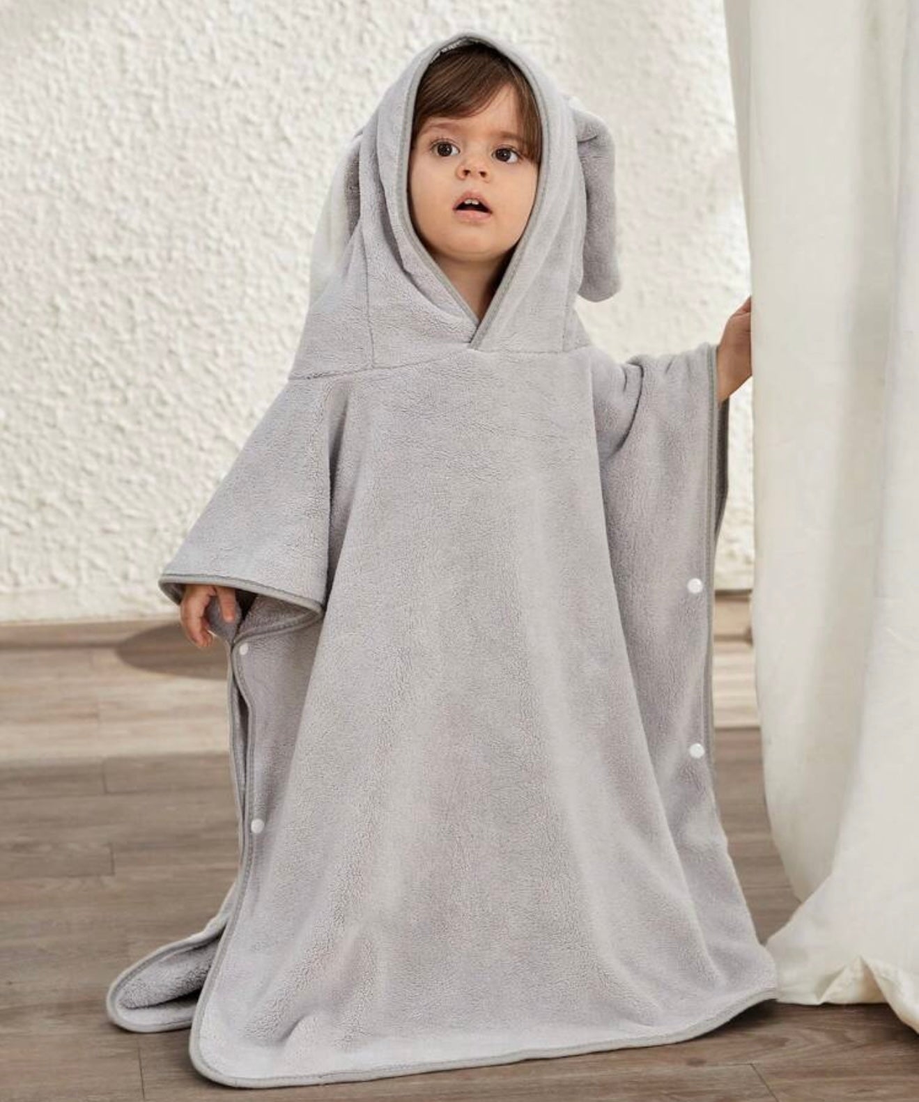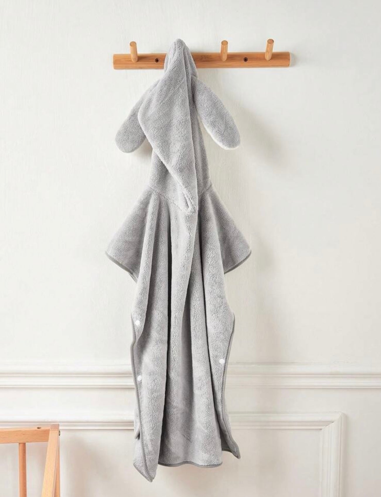 Adorable bunny ears on the hood add a playful touch, while convenient press buttons on either side help the towel stay in place for hands-free cuddles and easy drying.