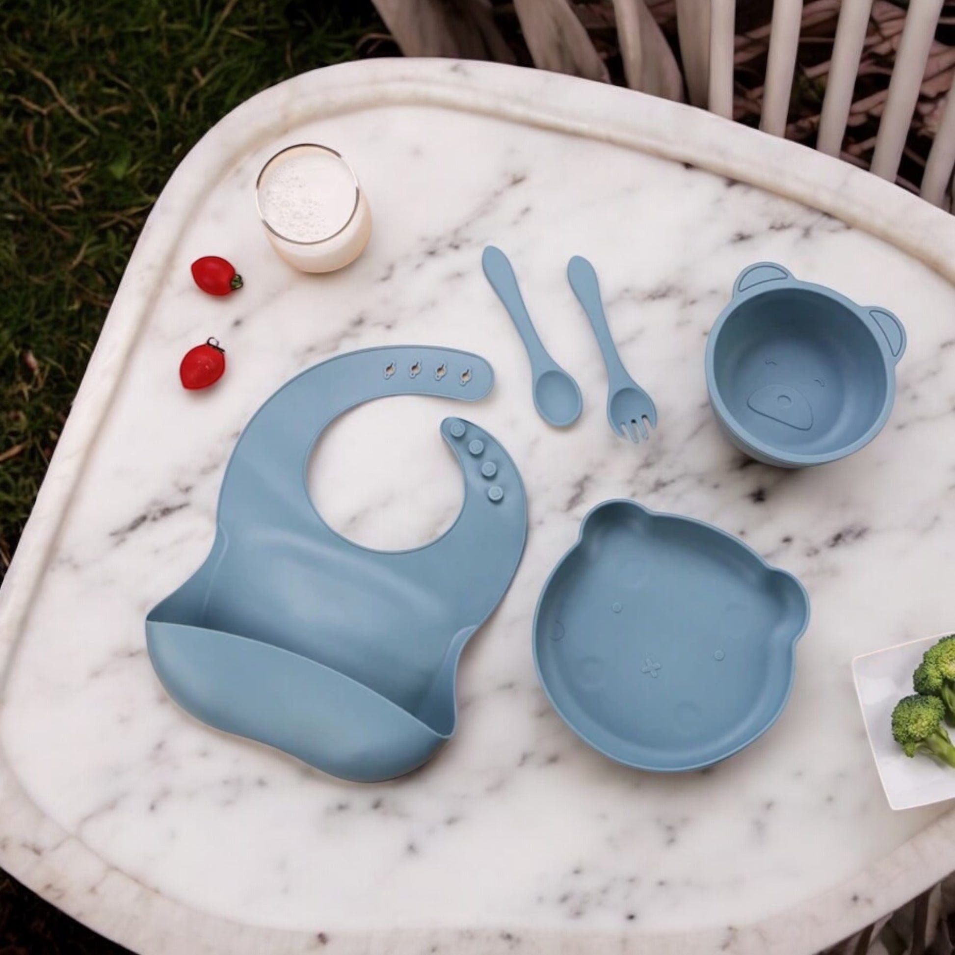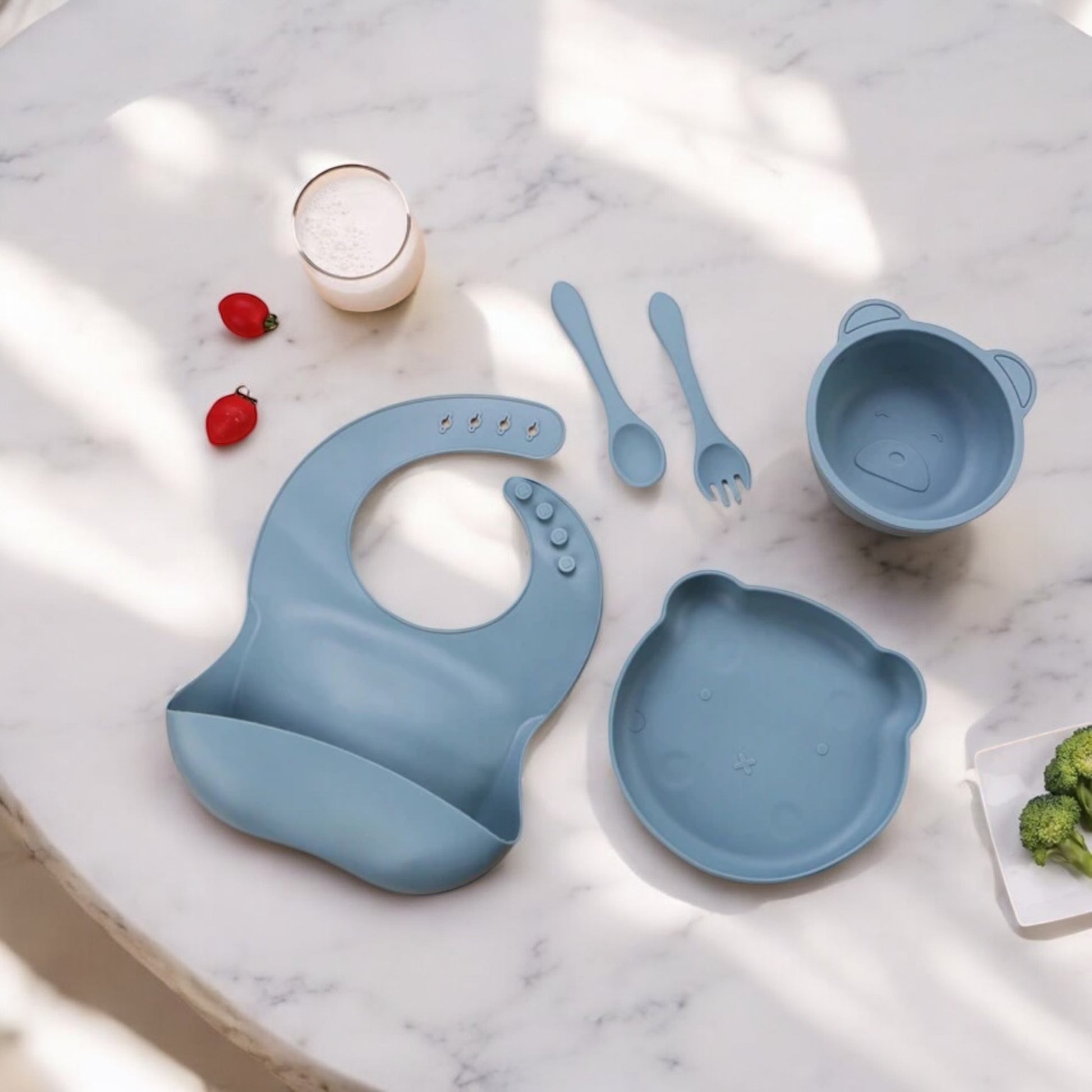 Make mealtime easy and enjoyable with our 5-piece baby weaning set, designed to support your little one’s first steps into self-feeding. This complete set includes a silicone spoon and fork, a suction bowl, a divided suction plate, and a soft silicone bib. Each piece is crafted from food-grade silicone that’s safe, durable, and easy to clean. The strong suction base on the bowl and plate helps keep food in place, reducing spills and mess. The bib’s adjustable fit and deep spill pocket catch crumbs, while the soft spoon and fork are gentle on baby’s gums. Perfect for introducing solid foods, this set makes a practical and thoughtful gift for new parents.