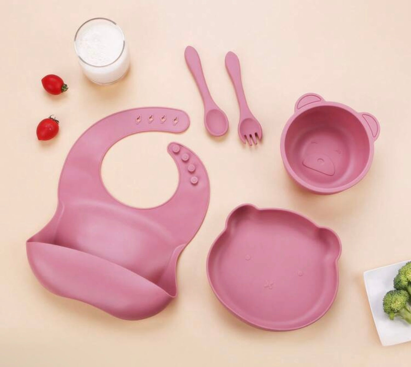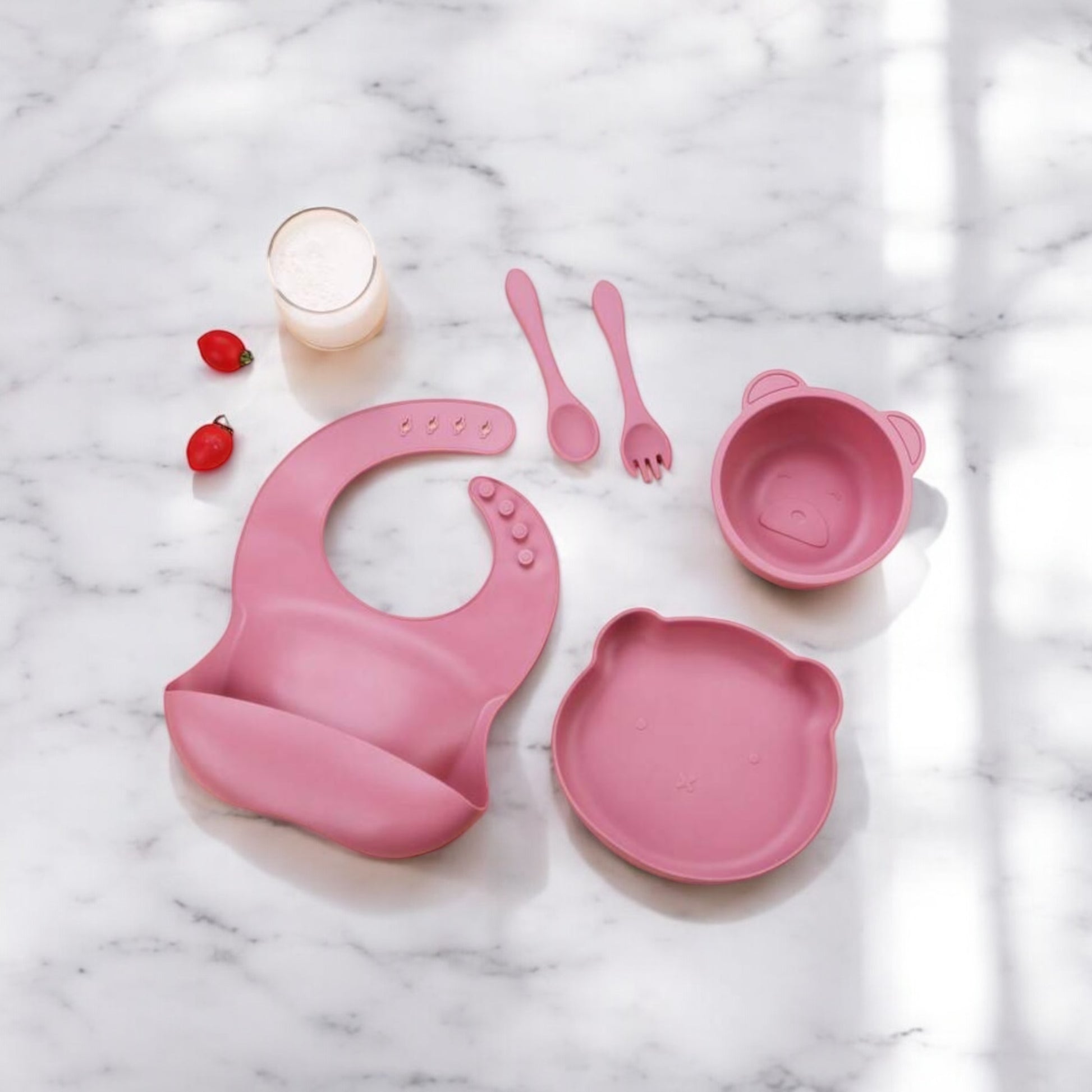 Make mealtime easy and enjoyable with our 5-piece baby weaning set, designed to support your little one’s first steps into self-feeding. This complete set includes a silicone spoon and fork, a suction bowl, a divided suction plate, and a soft silicone bib. Each piece is crafted from food-grade silicone that’s safe, durable, and easy to clean. The strong suction base on the bowl and plate helps keep food in place, reducing spills and mess. The bib’s adjustable fit and deep spill pocket catch crumbs, while the soft spoon and fork are gentle on baby’s gums. Perfect for introducing solid foods, this set makes a practical and thoughtful gift for new parents.