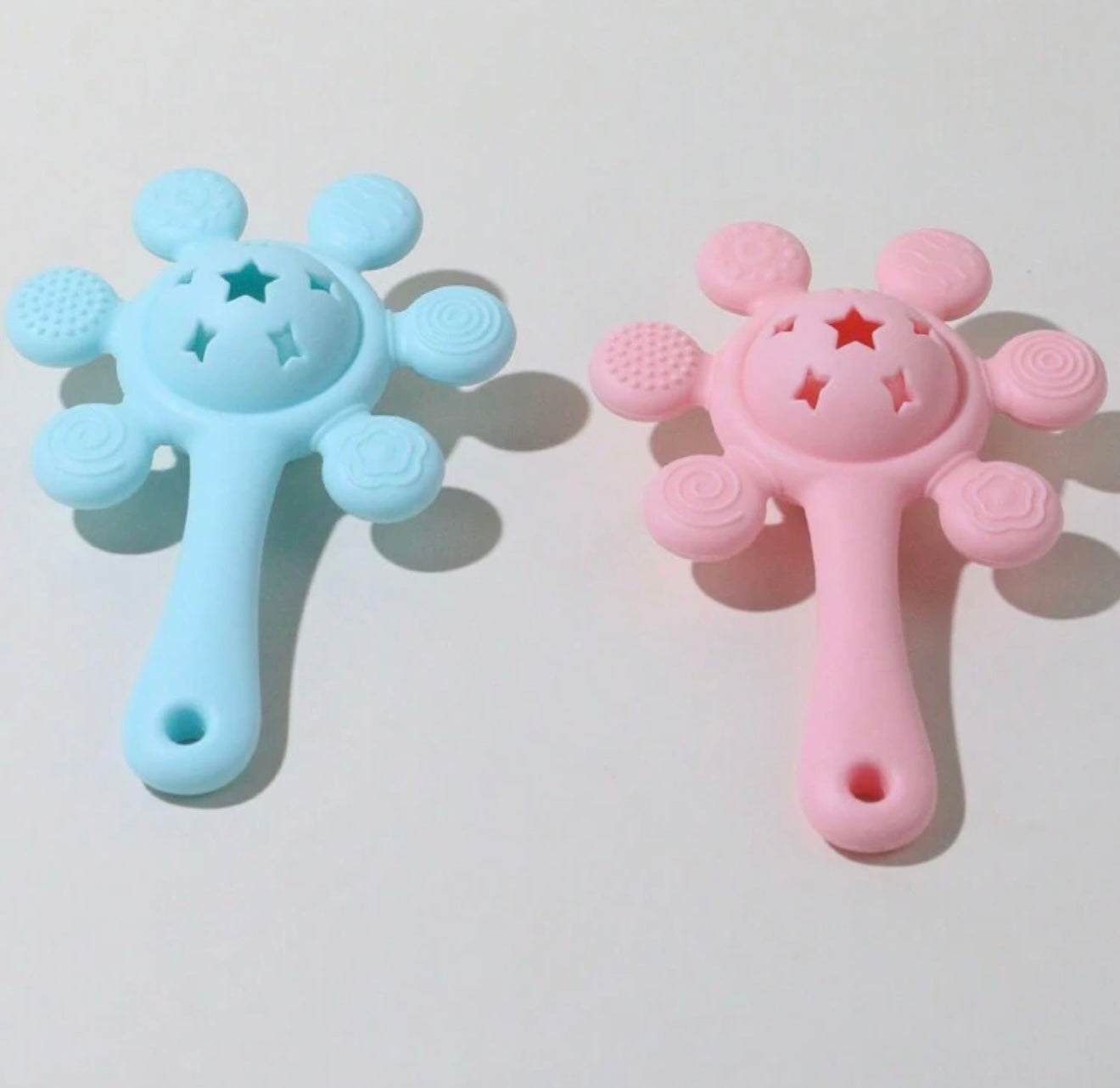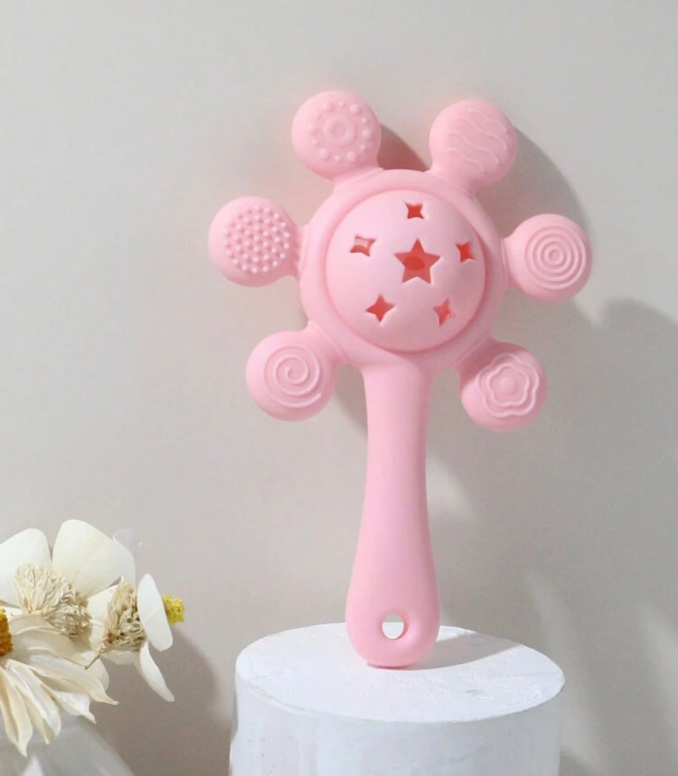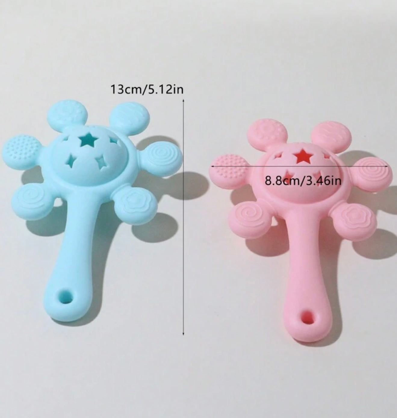 Soothe, entertain, and support your baby’s development with our Silicone Rattle Toy and Teether – the perfect multi-functional companion for curious little explorers. Made from 100% food-grade silicone, this soft and safe toy features a gentle rattle sound to engage your baby’s senses while offering a soothing surface for teething relief.