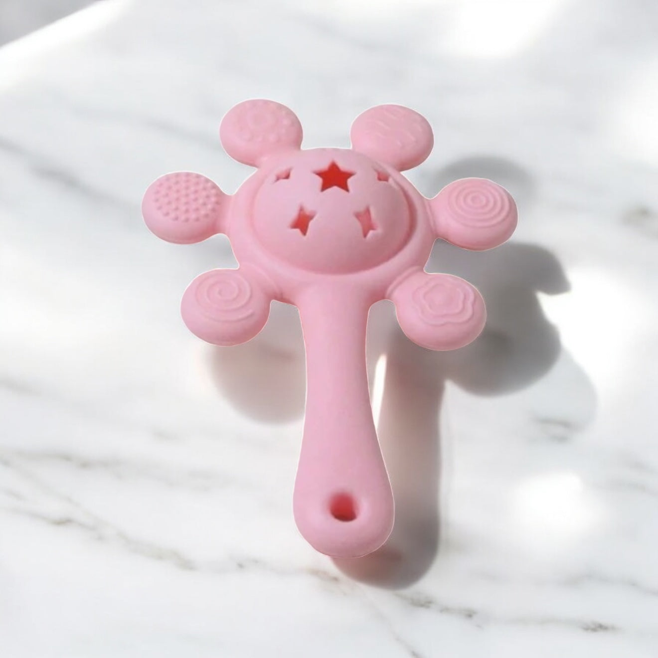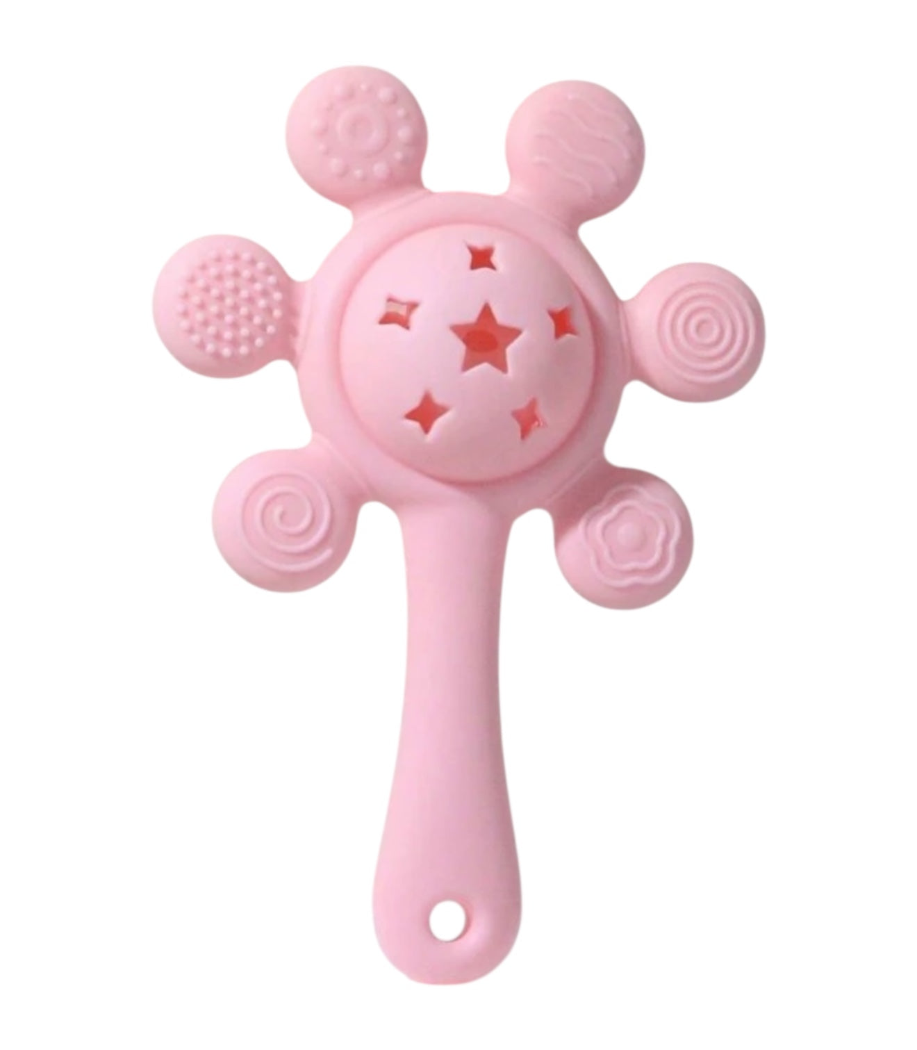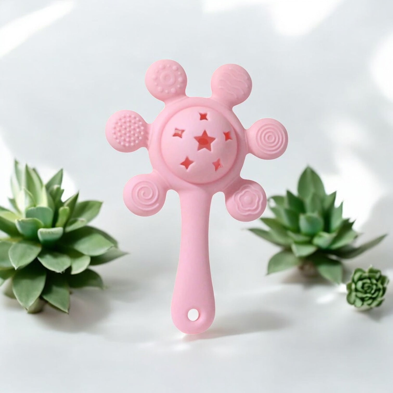 Designed with a long, easy-to-hold arm, this teether is ideal for tiny hands learning to grasp, improving fine motor skills and encouraging independent play. The textured surface provides gentle gum massage, while the lightweight, flexible design makes it perfect for babies aged 3 months and up.