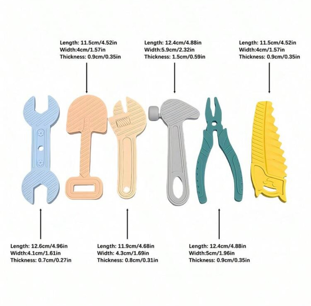 Encourage exploration and development with our 6-piece baby silicone tool set! Made from soft, food-grade silicone, these baby-friendly tools are perfect for teething, sensory play, and fine motor skill development. Designed for little hands to grip easily, they help promote hand-eye coordination while providing safe, non-toxic fun. Whether used for pretend play or soothing sore gums, this set is a must-have for growing babies!