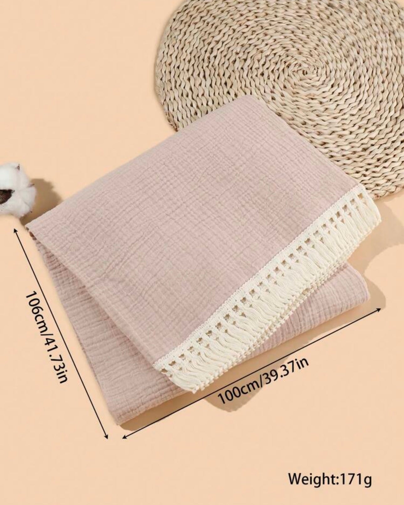 Wrap your baby in comfort and style with our soft muslin, featuring a delicate tassel edge. Crafted from breathable, lightweight material, this muslin is perfect for keeping your little one cozy without overheating. The gentle fabric is soft on baby’s sensitive skin, making it ideal for snuggling, nap time, or stroller rides. The beautiful tassel detailing adds a touch of elegance, making it a lovely keepsake or gift.