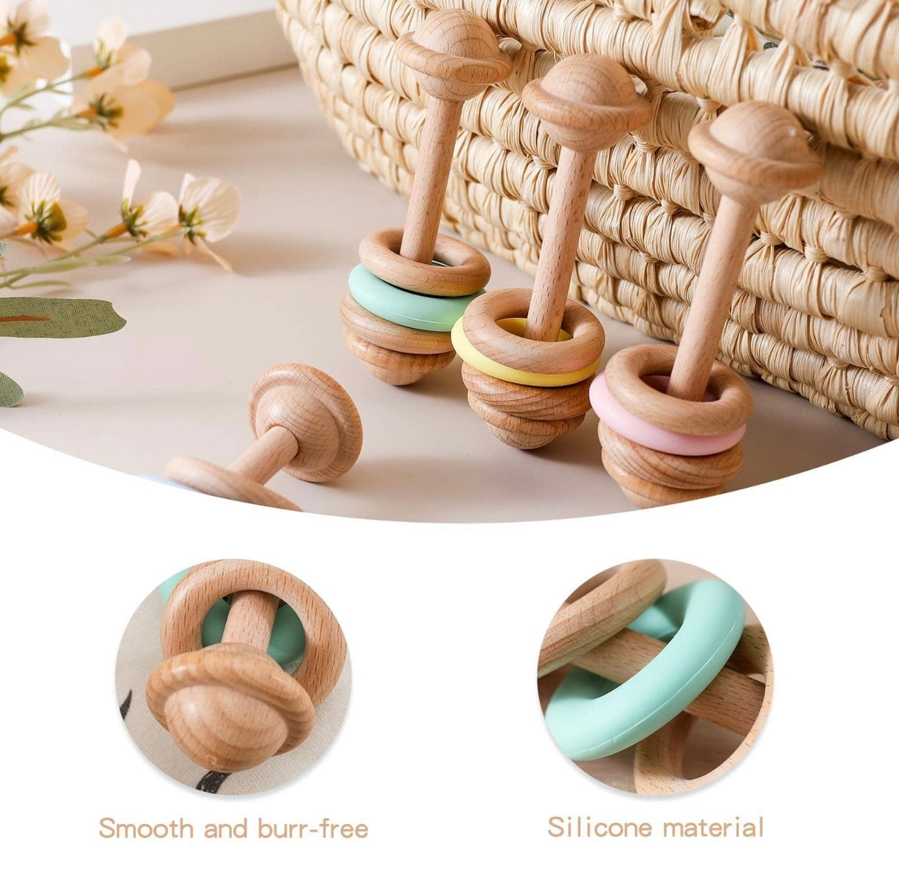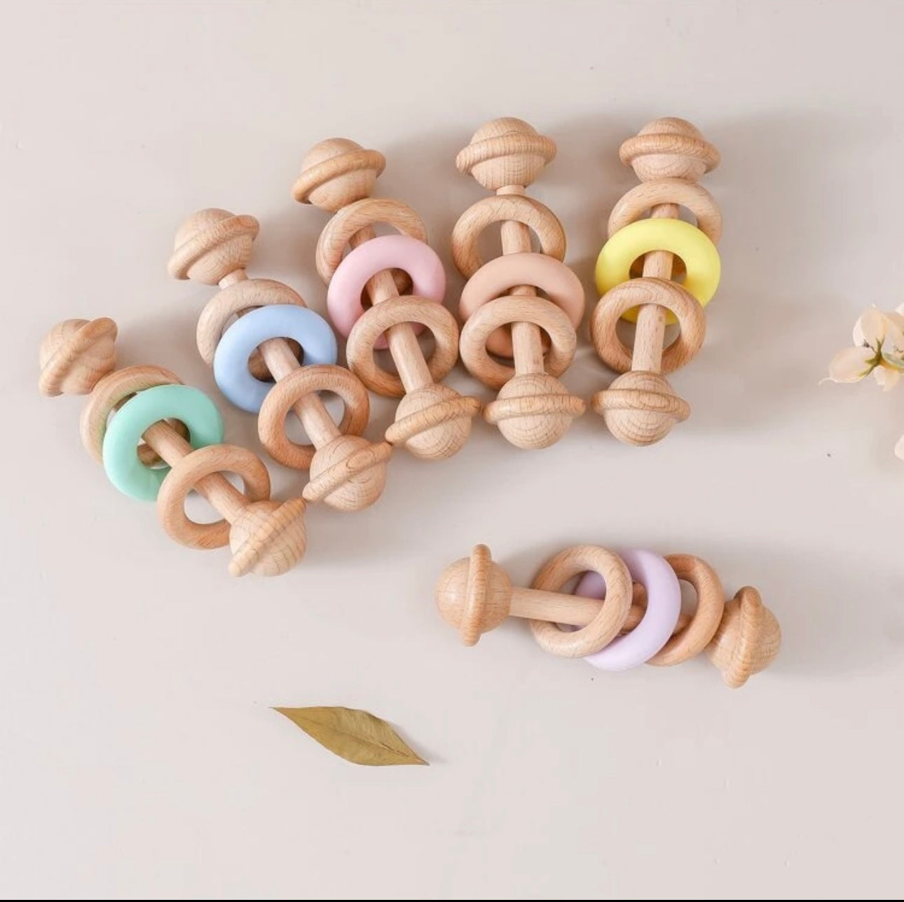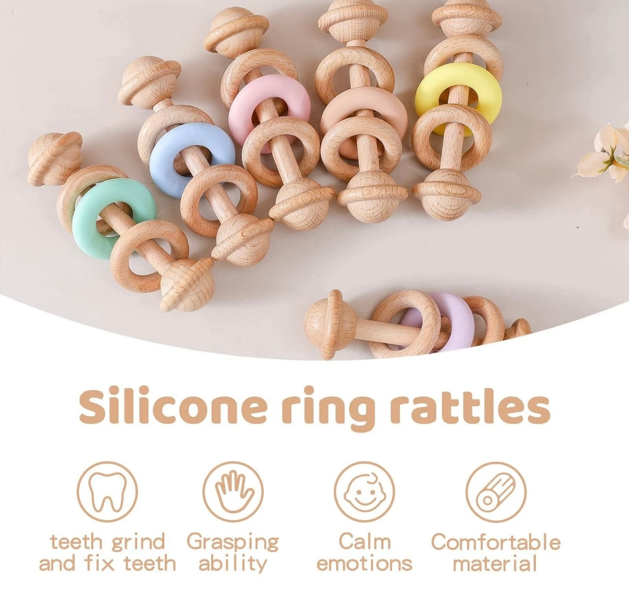 Introduce your little one to the charm of natural play with our Baby Silicone Ring Wooden Rattle. Made from high-quality, eco-friendly wood and BPA-free food grade silicone, this adorable rattle is crafted for tiny hands to grasp and explore. Its smooth, rounded edges and natural finish make it safe for teething and play, while the gentle, simple design encourages imaginative play and sensory development. Perfect as a nursery decoration or a delightful first toy, this wooden rattle is a timeless, thoughtful choice for little ones and a lovely gift for any occasion.